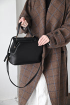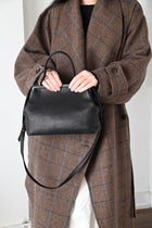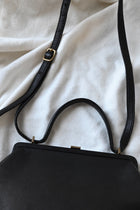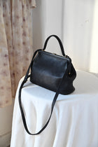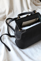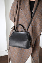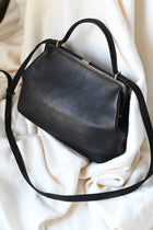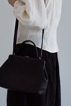 黒ですがマットな質感で優しい印象を与えます。金具の色(アンティークゴールド)との相性もよく、上品さや洗練された雰囲気を纏っています。日常からフォーマルなシーンの凛とした装いにも、おすすめ。とても軽やかな持ち心地です。