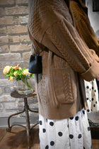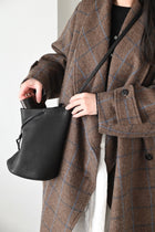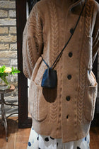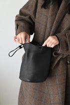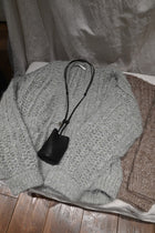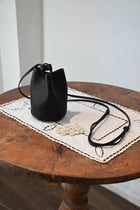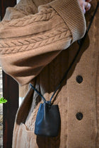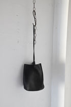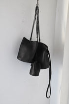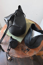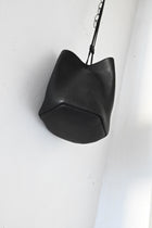 三又に分かれた口元はアヤメの花になぞらえたデザイン。紐の革留めをスライドさせることで開閉を行います。シンプルかつ洗練されたデザイン。