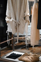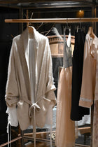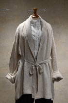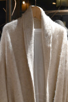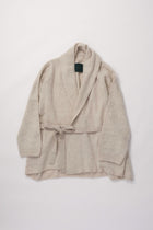 カシミアにも勝る高い保温性としっとりとした滑らかな風合いが特徴的なヤクニット。ボタン等の留め具はなく、ウエスト部分で共布ベルトをお好みで結ぶデザイン。軽さと暖かさを兼ね備え、冬場に頼りになる存在です。ベルトは取り外し可。(ループ付き)大きめのポケットあり。ゆとりがある身幅と長めの袖、全体に余裕を持った大きめカーディガン。ユニセックスでご着用いただけます。