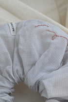 pinkのハンドステッチを施したシュシュ。いつものスタイリングに新鮮さをプラスしてくれます。優しいふくらみ感、軽やかなコットン生地がリラックスした印象。軽量です。カジュアルなスタイリングの日のヘアアレンジに◎