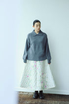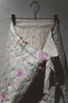 ノスタルジックな手描きの花柄を薄手のキュプラコットンにプリントし、キルティング加工を施し、大胆かつ魅力的なスカートに仕立てました。やさしい光沢を纏った儚くも美しい色彩は、心を安らげるような清涼感すら漂わせています。