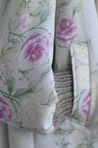 ノスタルジックな手描きの花柄を薄手のキュプラコットンにプリントし、キルト芯を入れて仕立てました。やさしい光沢を纏った儚くも美しい色彩は、心を安らげるような清涼感すら漂わせています。