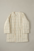 チェック柄のライン部分のみ緑色の糸を使用し、原料本来の色を生かした、オリジナルツイル生地。