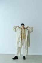 程よくゆとりのある身頃・袖幅。厚手のセーター等も中に着られる大きめのサイズ感です。