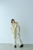 フードが取り外せるキルティングコート。アウターならではの程々のボリューム感が楽しめる、ふかっとしたシルエットが魅力。フードの内側はパイル素材になっており、異素材の組み合わせが目を惹きます。ノーカラーコートとしても2wayで着用できます。