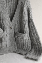 柔らかくふんわりと編み上げたペルー製のハンドニット。手編みならではの温かみを感じる風合いや保温性が特徴です。今季はポケットが付き、より使いやすいデザインに仕上げました。肩の位置を落としたドロップショルダー仕様。Vネックラインが抜け感をもたらし、重ね着してもすっきりと見せれくれます。