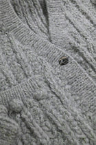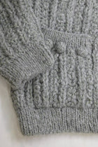 星柄が施されたボタン。ニットならではのポンポンモチーフは、視線が低くなる ポケット口に配置し、さっぱりと可愛らしく。
