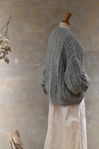 柔らかく編んでいるため、1着ずつの寸法に若干の個体差が生じます。また、着用頻度によっても袖・着丈など全体のサイズ感が変化していきます。ハンドニットならではの特性としてご了承ください。サイズは、おおよその目安としてご参考ください。