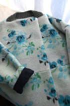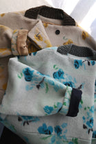 起毛加工を施し、ふんわりとした柔らかさを加えたオリジナルの花柄ジャガード。着込むと表面がさらに起毛してふわふわになります。まるで、ぬくぬくの毛布ブランケットに包み込まれたような優しい着心地。見た目もとっても可愛いです。