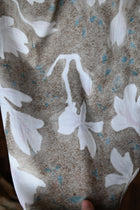 キュプラコットンツイル生地。手描きしたマグノリアの花の絵を薄手のキュプラコットンにプリントしました。やさしい光沢を纏ったツイル素材は、普段使いからフォーマルまで幅広く適応できます。