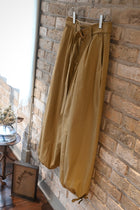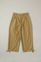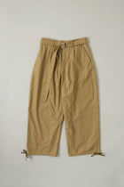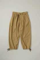 定番のダーツパンツをややすっきりとしたデザインにリニューアル。裾部分は紐で絞れるカーゴパンツ仕様。ベルト付き。