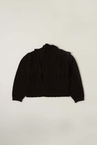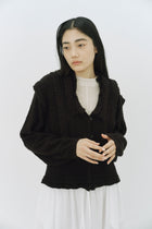 印象的なフリル使いに心が躍るニットカーディガン。コットンのループ糸を使用し、製品後に一着ずつ起毛加工を施しています。
