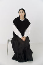 ゆったりとしたニットベスト。コットンのループ糸を使用し、製品後に一着ずつ起毛加工を施しています。