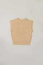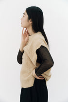 ゆったりとしたニットベスト。コットンのループ糸を使用し、製品後に一着ずつ起毛加工を施しています。