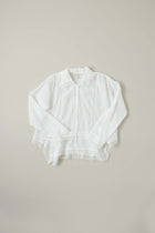 先シーズンご好評いただいた、裾のカッティンが特徴的な長袖ブラウス。数種類のレースを所々に細かく贅沢にあしらったデザイン。今シーズンはレース部分全てをコットンの可憐なレースを使用し、まるでアンティークのブラウスのような凝った雰囲気に作り上げています。